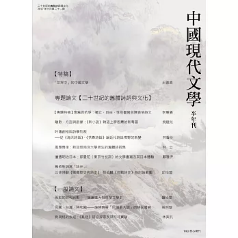再現文化:臺灣近現代移動意象與論述![]() | 湯顯祖研究文獻目錄續編(1996-2016)![]() | 靈魂餘溫:兩岸現當代文學批評集![]() | 中國現代文學半年刊 第31期(POD)![]() | ||||